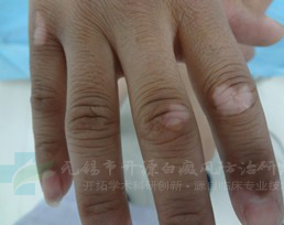 【治疗前,手指白斑正在扩撒】