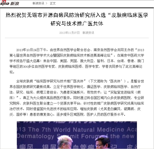 新浪网:无锡开源入选“皮肤病临床医学研究与技术推广医共体”