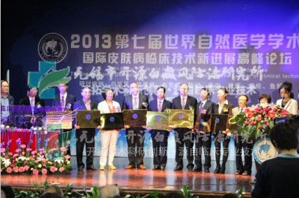 2013年10月24日下午,由世界自然医学会联合总会、南京自然医学会共同主办的“2013第七届世界自然医学学术大会暨国际皮肤病临床技术新进展高峰论坛”,在南京中医药大学学术报告厅盛大启幕!来自中国、美国、英国、澳大利亚、智利、日本、台湾、香港、澳门等地区的300多位自然医学专家、皮肤病临床医师、医学专家、学者共同参与了此次高峰论坛。